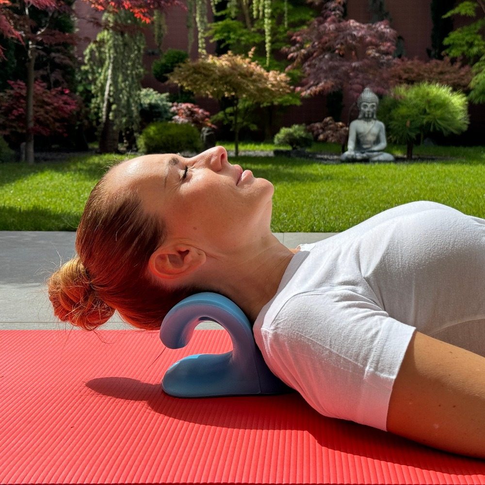 Die Nackenwolke beruht auf dem Prinzip der zervikalen Traktion (Entlastung der Halswirbelsäule). Bei diesem Verfahren wird ein sanfter Zug auf die Halswirbelsäule ausgeübt, um den Raum zwischen den Wirbeln zu vergrößern. Dies trägt dazu bei, Druck von den Nervenwurzeln und Bandscheiben zu nehmen, Muskelverspannungen zu reduzieren und die Durchblutung zu verbessern.